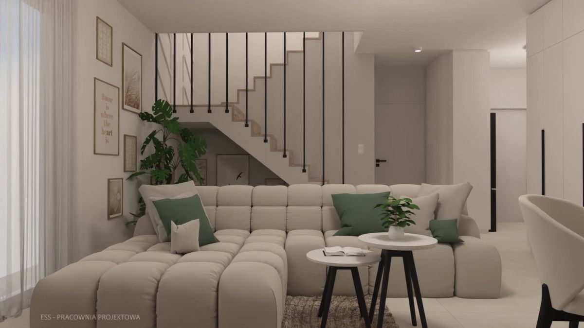 - wygodna, stanowiąca niezwykle elegancki element wykończenia wnętrz, klatka schodowa prowadząca na piętro.