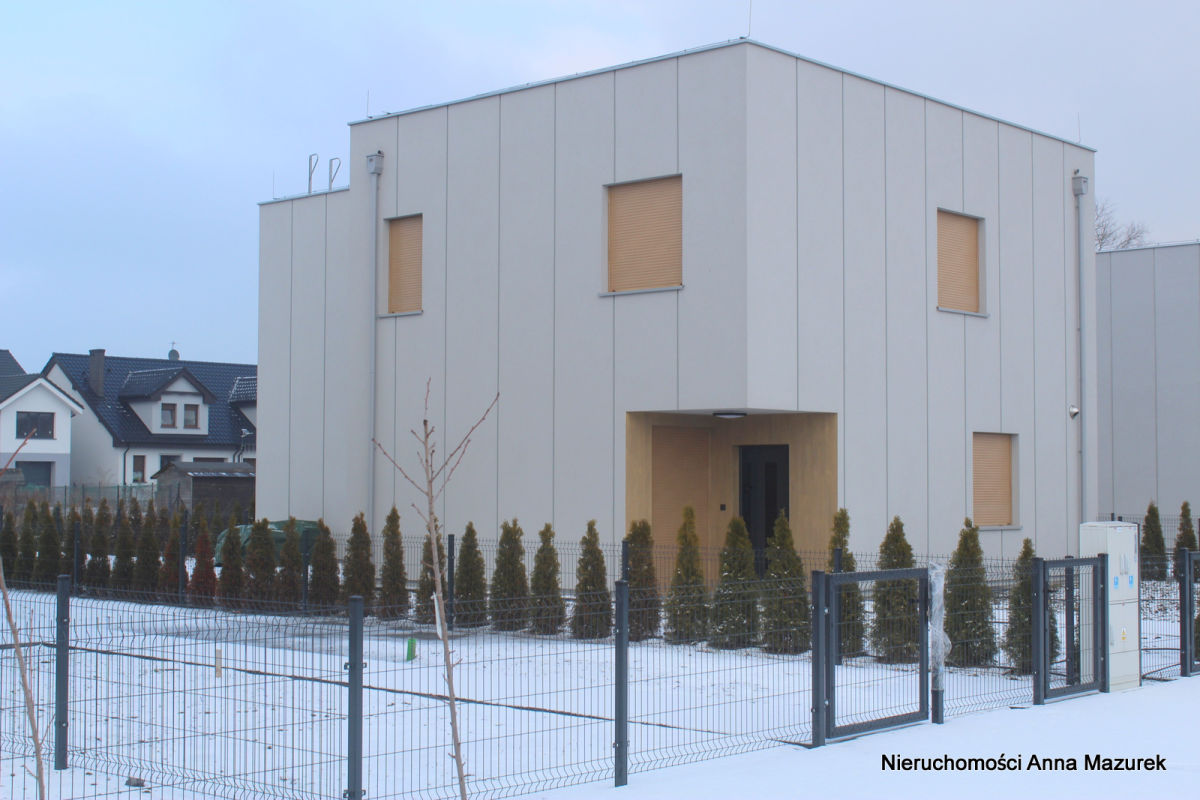 Dom pobudowany na nowym osiedlu domów jednorodzinnych w zabudowie bliźniaczej z widokami z okien na tereny rolne bądź zabudowę jednorodzinną, sporadyczną.