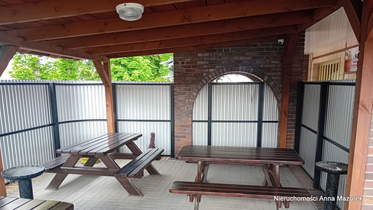 Bezpośrednio przy lokalu znajduje się bardzo ładny, zadaszony ogródek biesiadny, ogrodzony i wyłożony kostką brukową.
